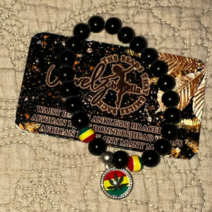 Bold in color and pattern, Tina Quaye of Ghana handcrafts the bracelet with round black beads interspersed with the ghana flag colors (red, gold, black, and green), added with either a charm, shell, wooden bead, or wooden heart, and black beads with a checkerboard pattern. The artisan titles this bracelet Madanfo, a Ghanaian Akan word meaning "my friend.