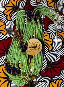 These traditional waist beads are threaded on a cotton cord for durability and longevity. They are meant to be tied on for long-term wear.
