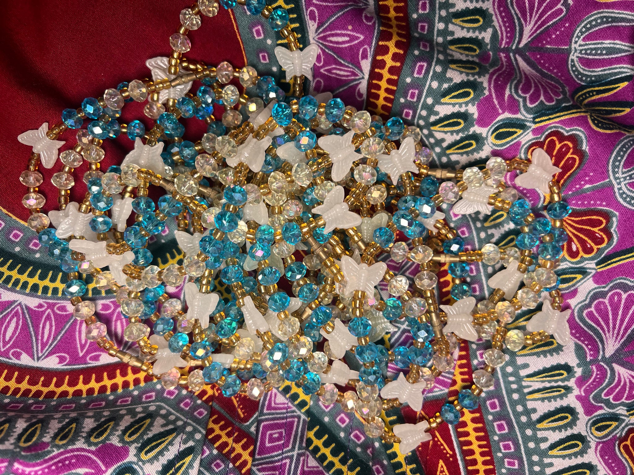 Materials: African beads, clasps, boho beads, beads, strong string, glass beads, clasp